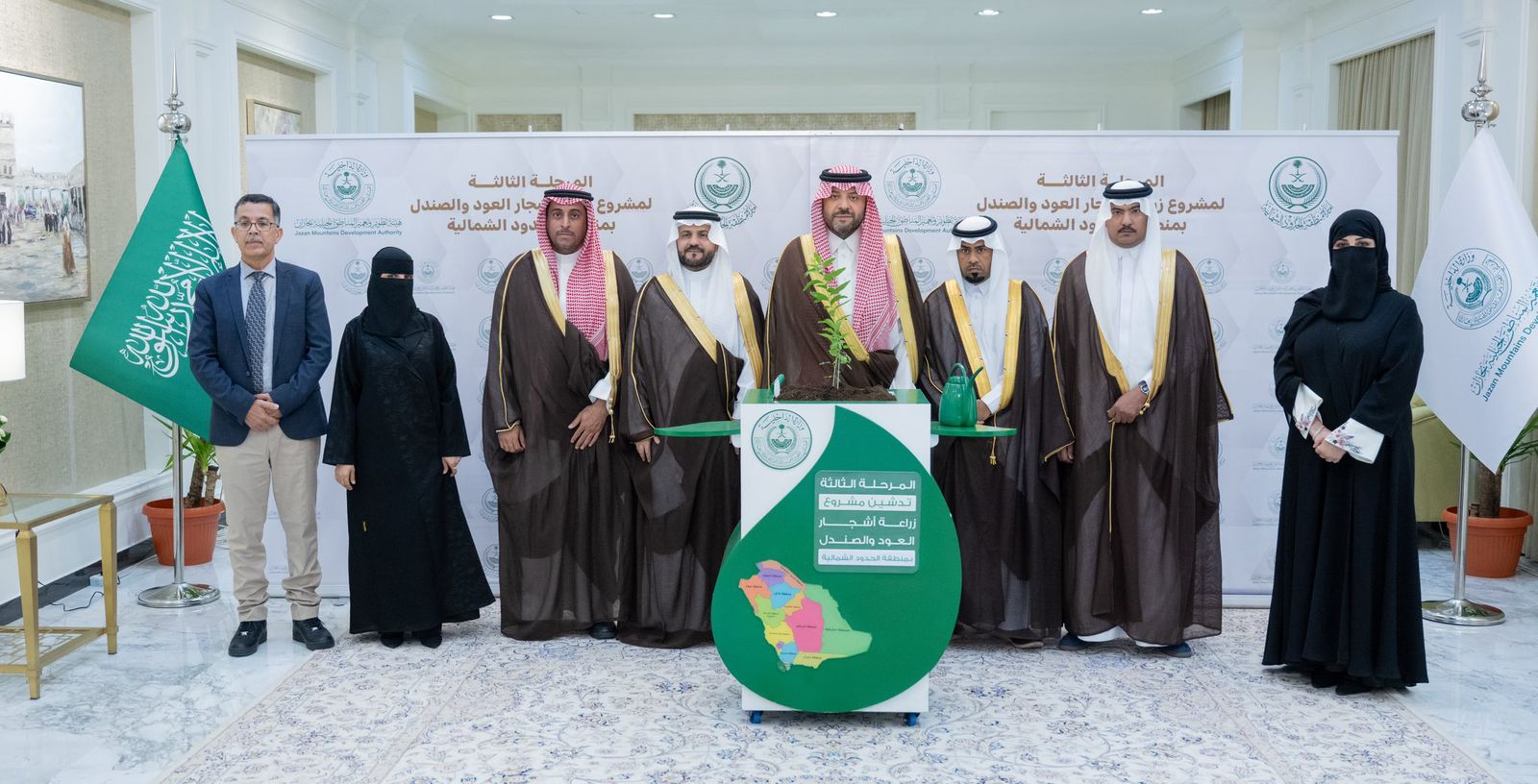 عقب ذلك، دشّن سموّه مبادرة زراعة أشجار العود والصندل، حيث زرع سموّه شجرة رمزية في حوض مهيأ لذلك إيذانًا بانطلاق المبادرة التي تهدف إلى تعزيز الغطاء النباتي وتنمية الأشجار العطرية ذات القيمة البيئية والاقتصادية، ضمن جهود فرع وزارة البيئة والمياه والزراعة لتحقيق مستهدفات رؤية المملكة 2030 في مجال الاستدامة البيئية.